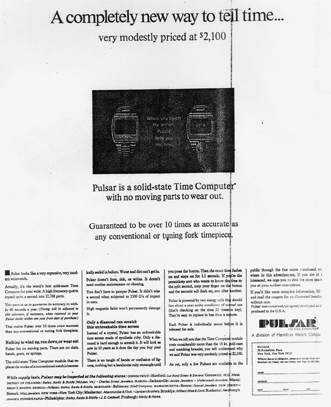 The Time Computer wrote: almost every advertisement described the Pulsar as: